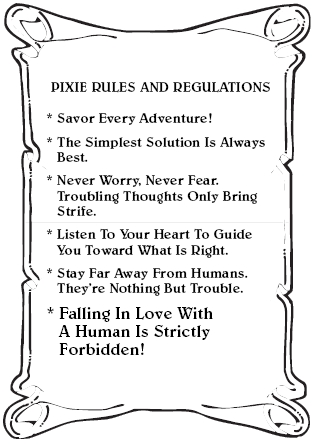 What a scandalous thought. Talk about breaking the rules! Human transformation was the most prohibited of all pixie policies. Why, she could be tossed out of Sidhe altogether.
