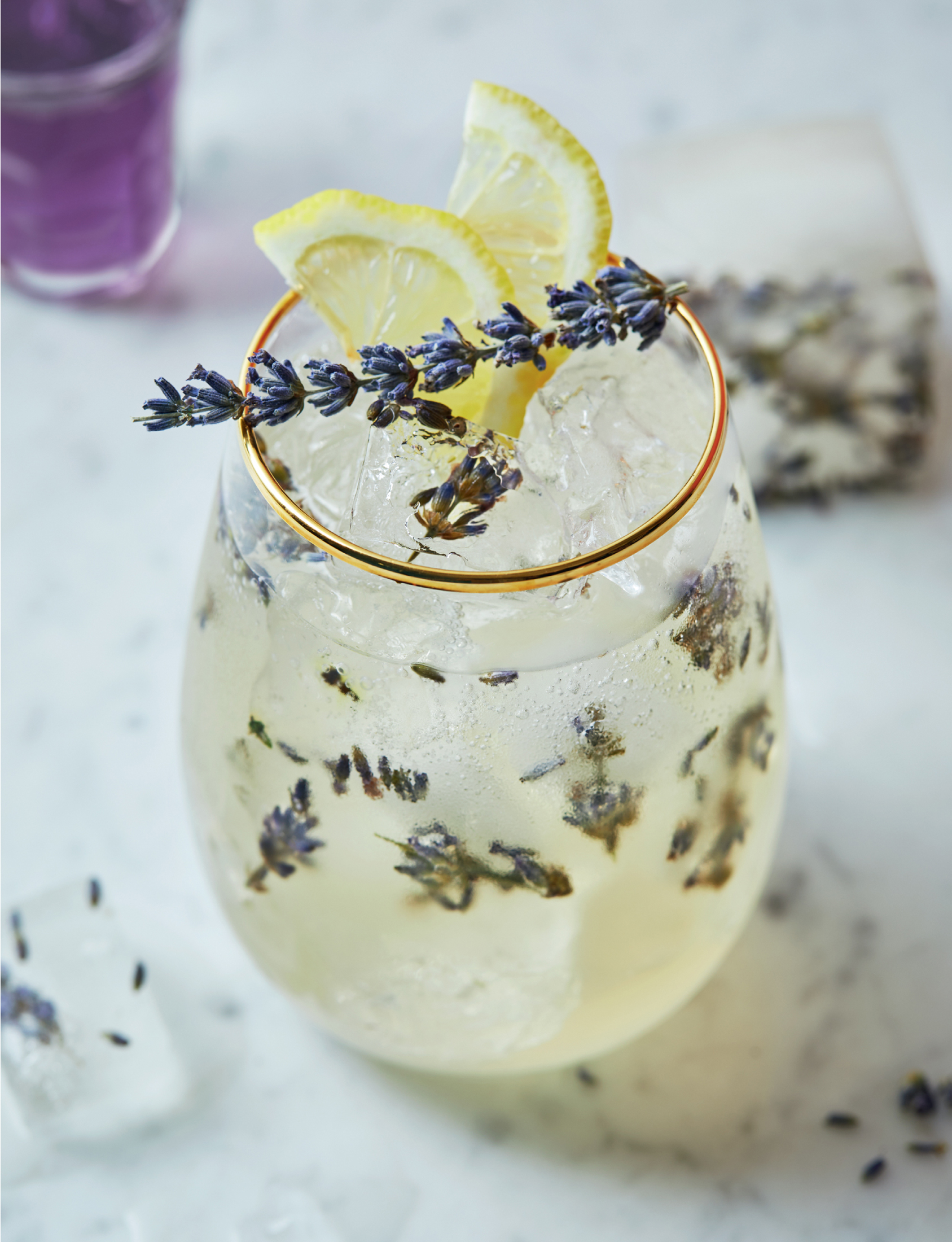 Put the gin into a collins glass and stir in the honey until it’s dissolved. Add ice (lavender ice cubes are beautiful in this drink – see Botanical Ice Cubes) then top up with cloudy lemonade. Garnish with lavender and slices of lemon.