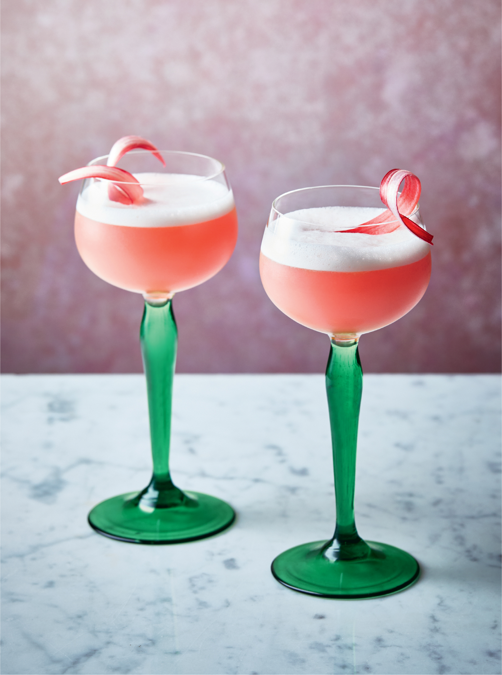 Add the gin to a cocktail shaker with the lemon juice, 20ml (¾fl oz) of rhubarb syrup and the egg white (if using) and shake once, hard, without ice to emulsify the egg. Add ice, shake again and strain into a cocktail coupe. Garnish with a rhubarb twist and serve.