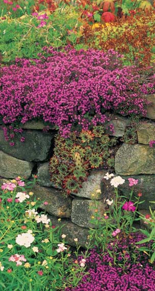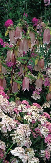 When plants are teamed, colours in one variety can pick up sympathetic tones in the hues of its neighbours. Here, the bell flowers of the tall Campanula echo the mauve and pink hues of the annual candytuft.