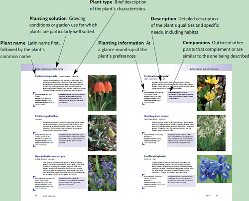 Examples of plant associations are also included, for example, here, where a scheme with annuals is described and illustrated. Like the special spreads, these are intended as prompters for further ideas, rather than as specific recipes to which one must adhere.