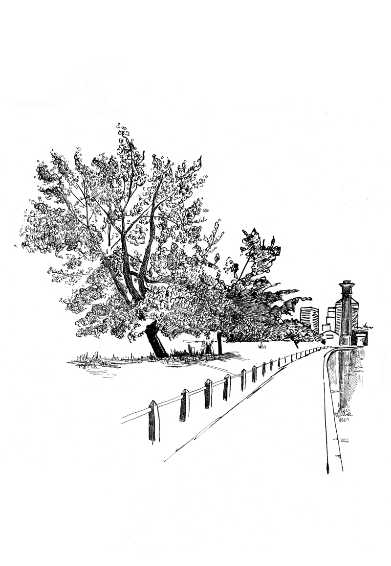 The upsweep of branches above me ends in great clusters of leaves, their contrasting sides of green and white giving a sense of motion, even without a breath of wind. I try to flat-foot up the poplar’s slope and retreat dispirited, having moments before fallen from the first branches of another close to Limehouse Basin. Drenched in sweat, I begin to question the merits of climbing in thirty-degree heat.