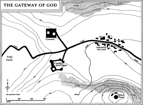 Years before, no one knew how many, not even the priest, but in those far-off days when the Christians fought the Muslims in Spain, the Holy Mother had come to Adrados. Everyone knew the story. Christian Knights were falling back through the valley, hard pressed, and their leader had stopped to pray beside a granite boulder that was poised on the edge of the pass which fell off to the west, towards Portugal, and then it had happened. She had appeared! She stood on the granite boulder, Her face pale as ice, Her eyes like mountain pools, and She told the Knight that the pursuing Muslims would soon stop to pray themselves, to face east towards their heathen home, and that if he turned his tired troop about, if they drew their battered swords, then they would bring glory to the cross.