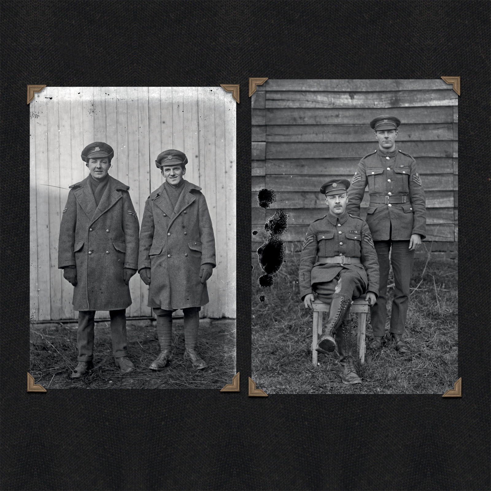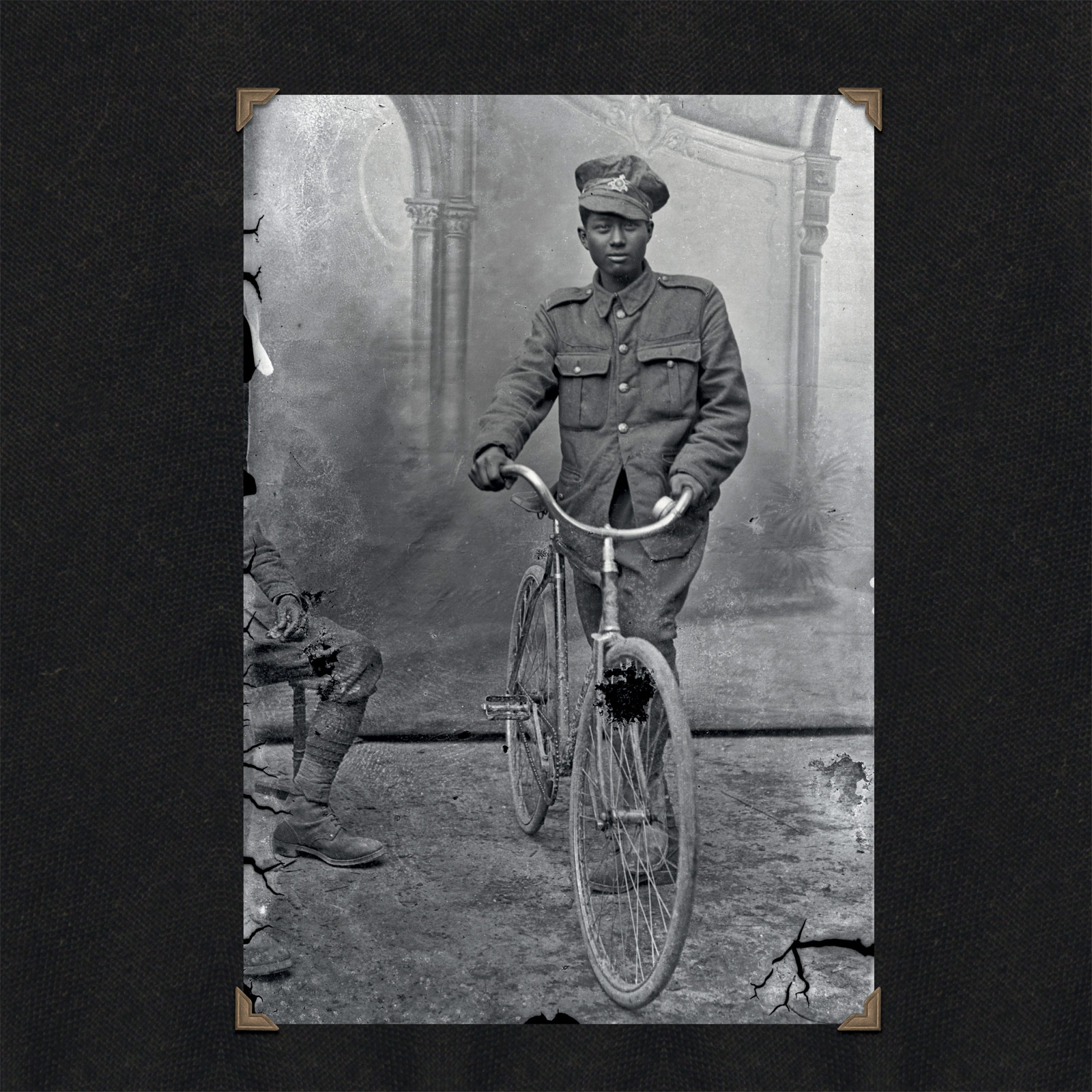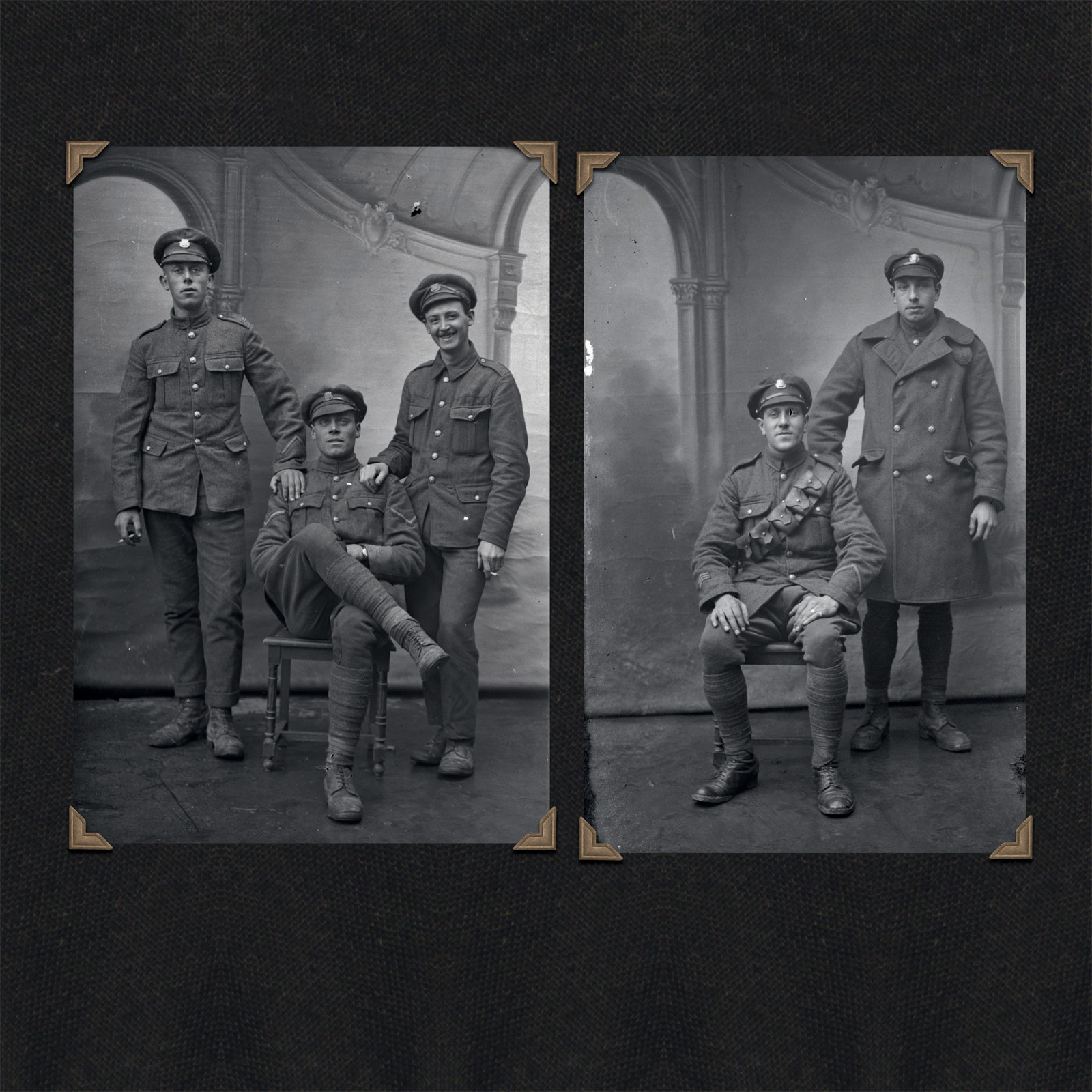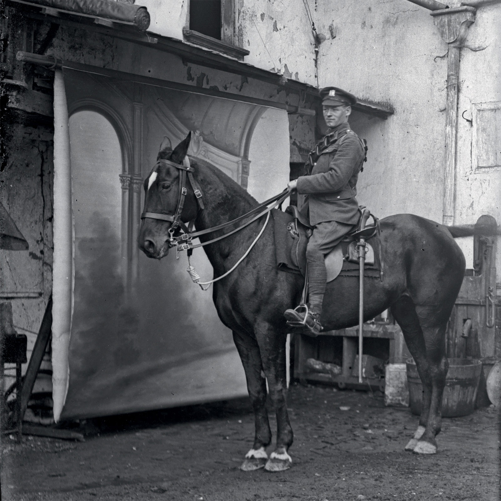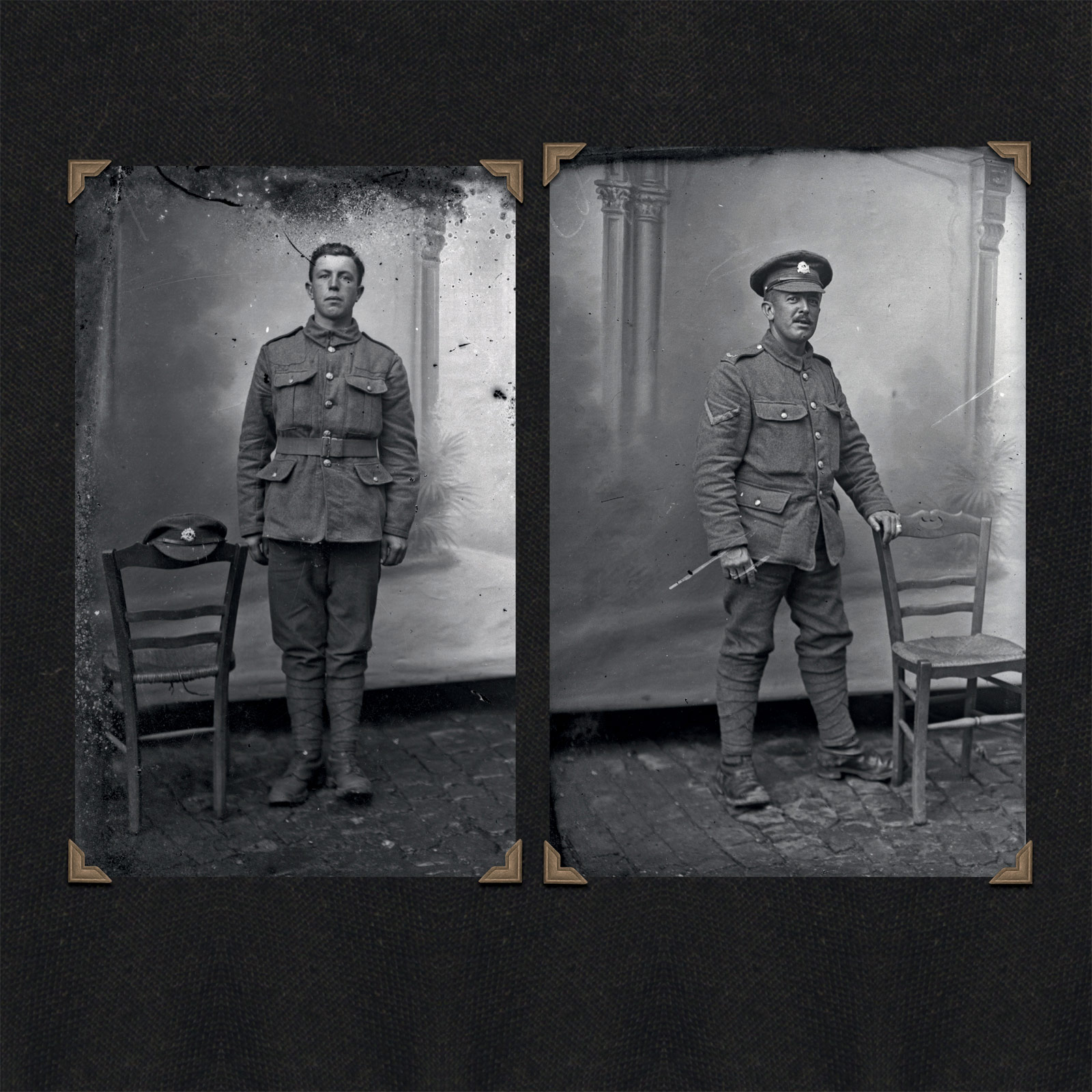 One of the key clues that helped us track the Thuillier collection was the distinctive backdrop that appears behind soldiers and civilians in many of the pictures. Well before the discovery of the Thuillier portraits, historians at the Australian War Memorial had noticed the length of painted canvas in a handful of images of different soldiers held in its collection, and they were excited by what it implied. If a photographer had taken the trouble to paint a backdrop for posed photographs somewhere behind the front line, maybe there were more to be found than the dozen or so that had made their way into official collections.