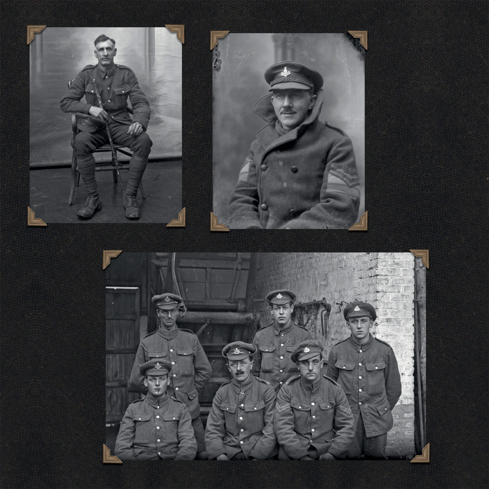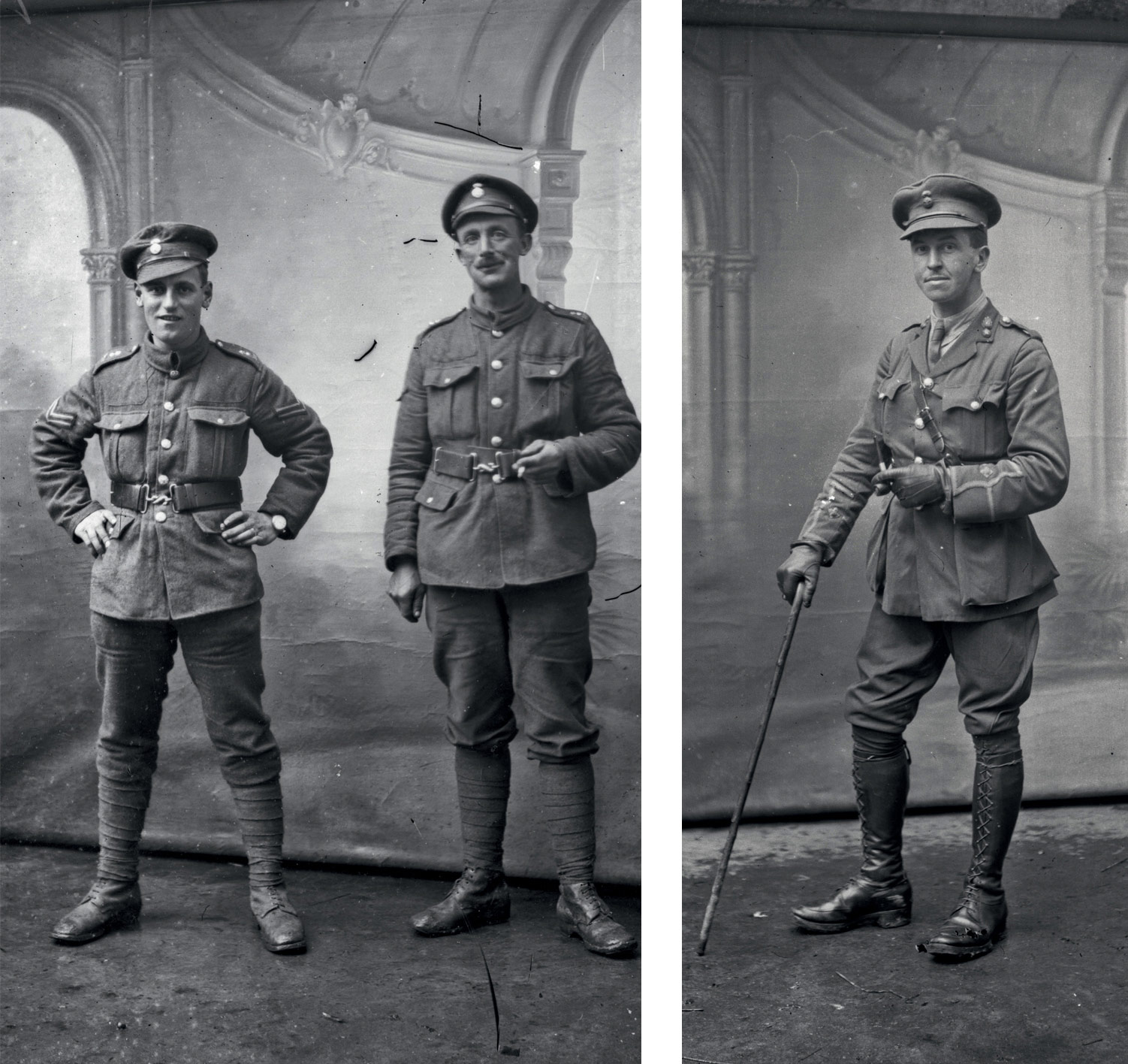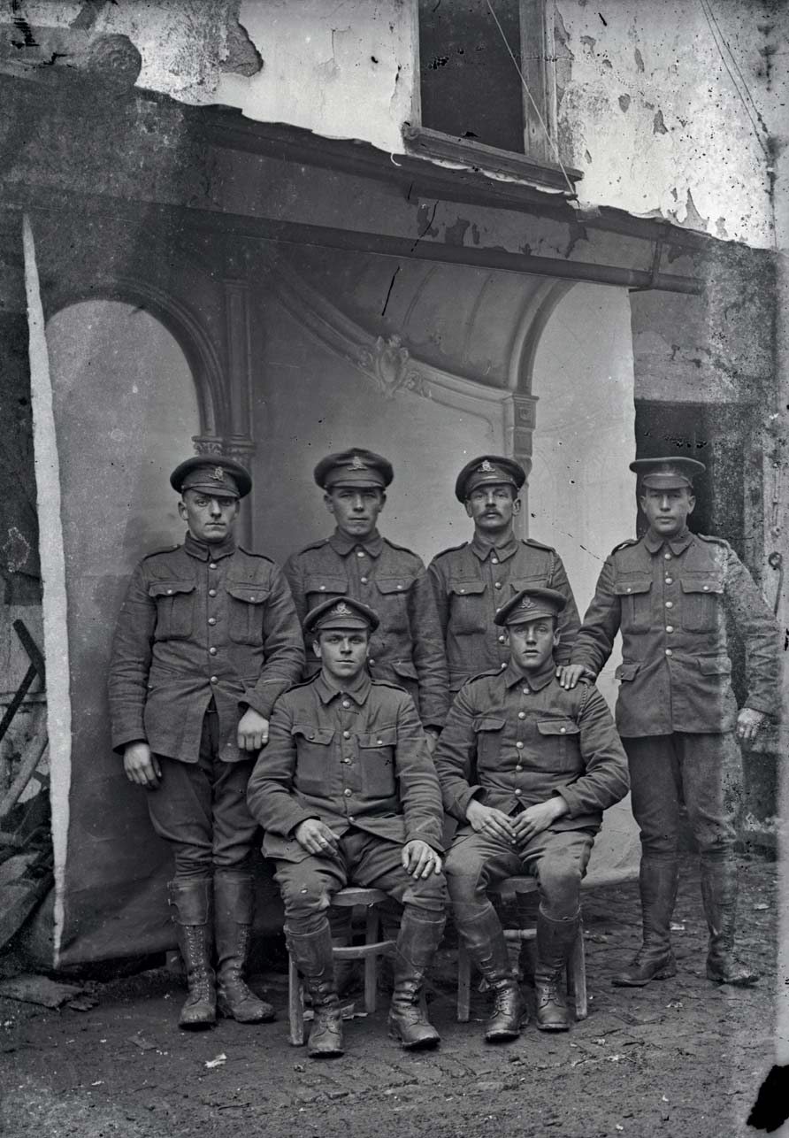 The process of identifying, at least by regiment, as many of the Thuillier images as possible for this book has been a painstaking and often frustrating process. Many of the soldiers were photographed in front of the distinctive painted canvas backdrop and that has been a useful fingerprint in identifying Thuillier pictures which made their way back home into family collections or regimental history books. On rare occasions the identification was easy because a particular soldier features and is actually named in one of the rare Thuillier images reproduced in regimental history books or contained in personal collections. There have been other occasions where photographs taken of soldiers after the war have allowed us to ‘match’ them with a soldier in a Thuillier image (see the Royal Fusiliers). Once identified, it has also been difficult to find out more about a particular soldier because so many of the British service files are incomplete or were destroyed completely in German bombing raids during the Second World War.
