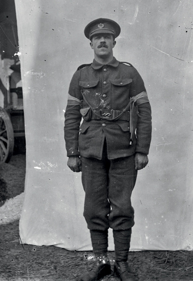 PLATE 45 A soldier from the Royal Engineers. His armbands show he is a qualified signaller. Possibly taken when the engineers were in and around Vignacourt in early 1916 preparing transport links and hospitals for the Somme offensive.