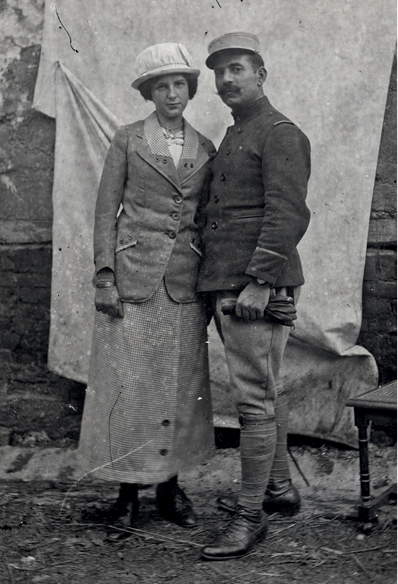 PLATE 41 An early Thuillier photograph of a French second lieutenant, of the 4th Colonial Infantry Regiment, and his wife, without the distinctive backdrop. Likely to have been taken sometime in July 1915 when the French 1st Colonial Corps was billeted in Vignacourt.