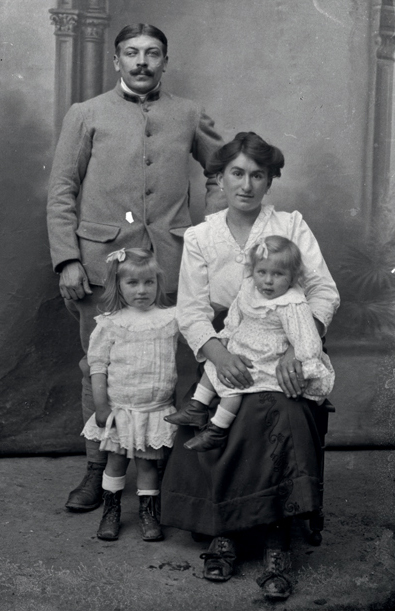 PLATE 42 A French soldier and his family in front of the distinctive Thuillier canvas backdrop.