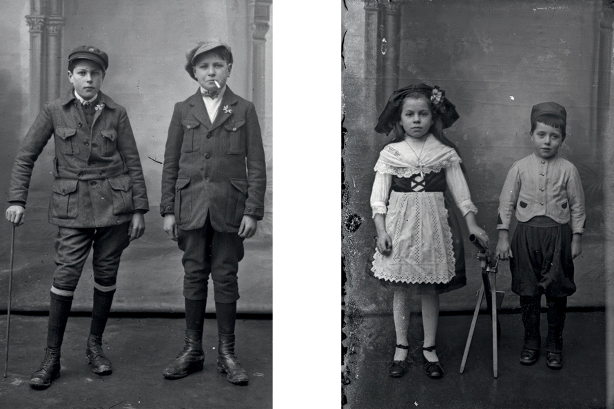 PLATES 59 – 60 Two young lads – one smoking! – pose for the Thuilliers and (right) a sobering illustration of how the war influenced young local children: this boy has a toy machine gun and uniform.
