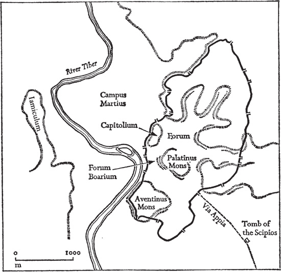 The wall is the so-called ‘Servian’ wall of which extensive tracts still survive; this massive construction shows the structures of the Roman state intact and functioning and able to deploy substantial resources for a communal undertaking. The area enclosed (Fig 3) is already large, and, as if to symbolize the conviction that the Gallic sack changed nothing, the wall is built with tufa from the territory of conquered Veii.