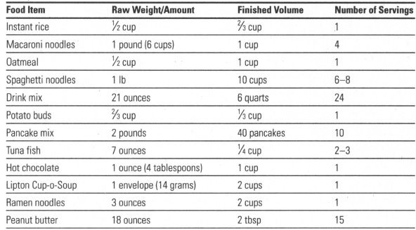 Here are some common menu items with information on how weight or volume converts to the number of servings: