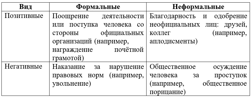 Социальные санкции – это меры/способы общественной реакции на поведение человека или группы.