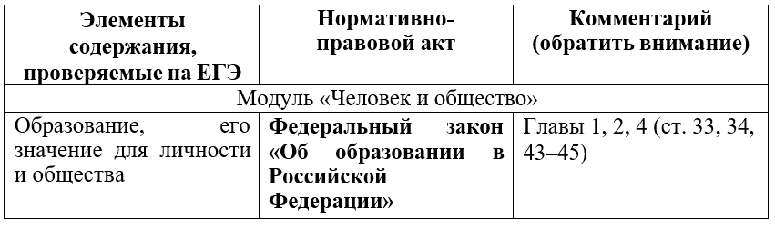 Обратите внимание на «Краткий перечень нормативных правовых актов, которые раскрывают отдельные аспекты тем, заявленных в Кодификаторе элементов содержания и требований к уровню подготовки выпускников образовательных организаций для проведения единого государственного экзамена по ОБЩЕСТВОЗНАНИЮ»;