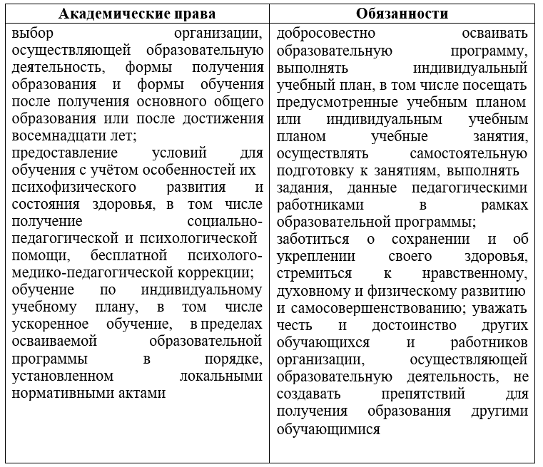 Советуем составить таблицу прав и обязанностей обучающихся.