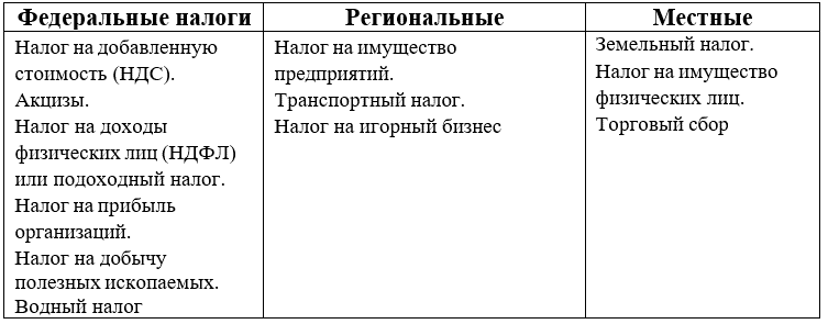 Обратите внимание: налоги подразделяются по уровню установления: федеральные, региональные, местные. По способу взимания: прямые и косвенные. Прямые, например: налог на доходы физических лиц, налог на имущество. Косвенные, например: налог на добавленную стоимость, акцизы, таможенные пошлины.