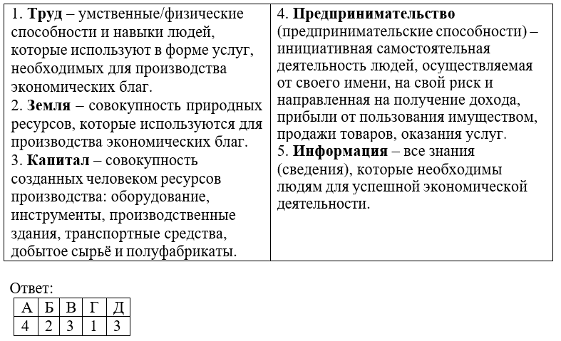 Вспомним теорию. Факторы производства – это ресурсы, которые участвуют в процессе производства товаров и услуг.