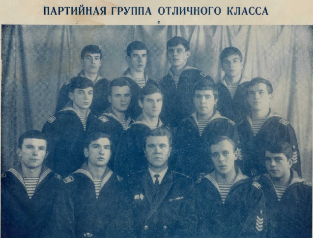 Кандидаты в члены КПСС 4-го взвода. Слева направо, 1 ряд: А. Романов, А. Залетов, А. Е. Антипин (командир роты), В. Вальденс, Д. Мадешов; 2 ряд: В. Дюдяков, В. Цветков, А. Пройдак, В. Стоянов, А. Гаврилов; 3 ряд: С. Никонов, А. Карпенко, А. Кравцов, Л. Курбаков