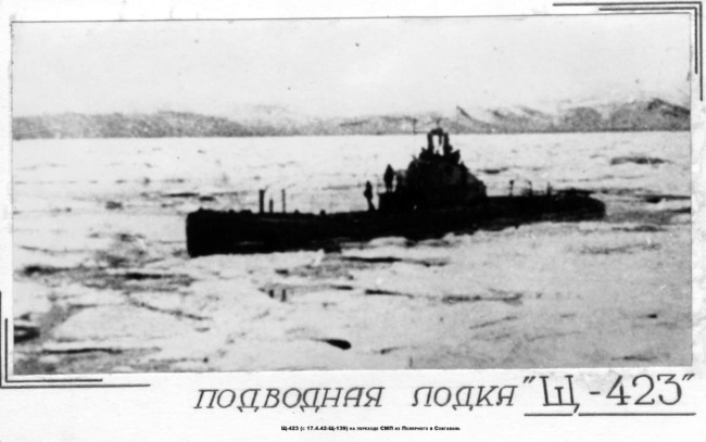 Переход подлодки обеспечивал специально выделенный транспорт Наркомрыбпрома «Анатолий Серов», на котором были установлены дистиллятор и станция УКВ[5]. В трюма транспорта загрузили 250 тонн различных грузов: топливо, аварийно-спасательное имущество, артиллерийский боезапас и продовольствие. Для отдыха экипажа подлодки был обустроен специальный кубрик на 36 мест. Больше месяца длился поход Щ-423 по Северному морскому пути.