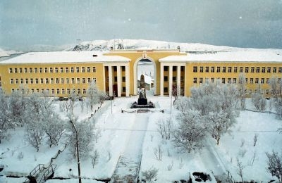 Перед зданием казармы в 1948 году был сооружен памятник героям-подводникам Северного флота, погибшим в годы войны. Под барельефом матроса выбита надпись: ВЕЧНАЯ СЛАВА ГЕРОЯМ, ПАВШИМ В БОРЬБЕ ЗА СВОБОДУ И НЕЗАВИСИМОСТЬ НАШЕЙ РОДИНЫ. С трех сторон на постамент нанесены названия всех погибших в Великую Отечественную войну подводных лодок и фамилии их командиров.