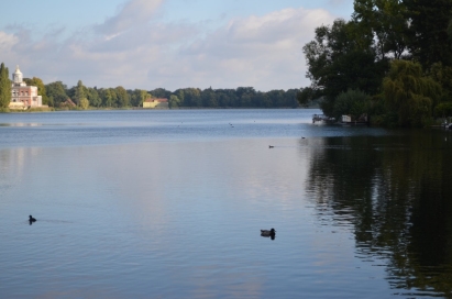 Озеро Юнгфернзее в Русском парке Потсдама. Слева – музей, вдали – дворец Цецилиенхоф, где проходила Потсдамская конференция в 1945 году