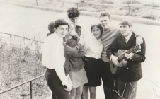 Друзья из 494-й школы. С гитарой – Володя Кулаков, рядом – Володя Цветков, Наташа Яковлева, Саша Цывлин