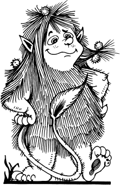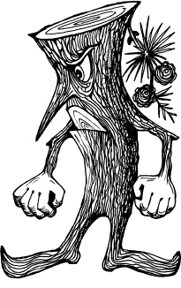 От дерева неожиданно отделился бука. Выглядело это так, словно нижняя часть дерева просто отошла в сторону: бука как две капли воды походил на ствол обыкновенной лиственницы. Длинные руки с огромными кулачищами величиной почти с его голову свисали ниже колена. Ноги же, наоборот, казались непропорционально короткими. Всё тело буки покрывала шелушащаяся кора, а черты лица были очень грубыми, как будто вырубленные топором.