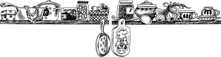 Все стены подземной кухни были украшены заготовками на зиму: гирляндами репчатого лука, сушёных грибов, ягод и кореньев. В массивном буфете стояли баночки с маринованными жуками и пузатые глиняные чашки, из которых пить чай гораздо вкуснее, чем из обычных.