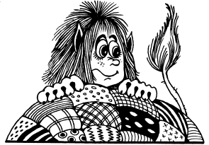 Бяка лежала в утренней туманной полутьме на своём любимом соломенном матрасе. Вокруг неё громоздились три кучки. Справа были грибы, слева – ягоды, а прямо – кучка для мусора, в которую можно было попасть или не попасть, и то и другое очень весело. Бяку вполне устраивала такая скромная обстановка: удобно, всё под рукой – и еда, и сны, и мысли. А приключения? Ёх-хо! Приключения – снаружи. Бяки не любят приключений в своих шалашах. Дома им нужен только покой.