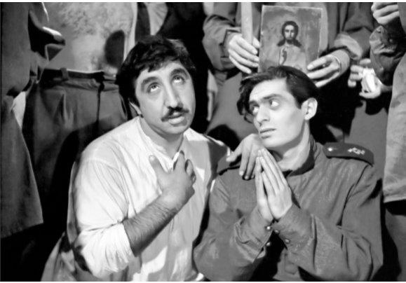 В фильме в полной мере проявилась ненаигранная, непридуманная, истинная народность дарования Фрунзика. И еще одно важное замечание. После появления на экране Фрунзику захотелось попробовать поиграть в «чаплиниану», по-чаплински поработать с деталями, предметами, с партнерами… И это ему удается. Он, может быть, единственный раз за свою кинематографическую карьеру играет роль лидера, которому беспрекословно, по одному свистку, по движению бровей подчиняется его команда. Однако очень скоро выясняется, что лидер тут другой – большевик Дарбинян. А Кулак, он и есть кулак – сильный, бестолковый и добродушный увалень. Рубаха-парень. Такое двойное дно характера.
