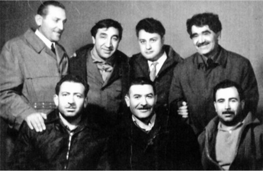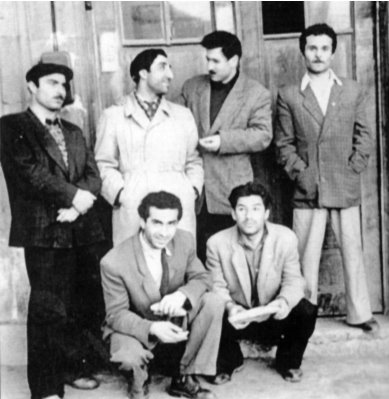 Фрунзик Мкртчян и Азат Шеренц (стоит крайний справа) с друзьями. 1960
