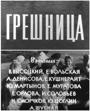 Картина «Грешница» (премьера состоялась 15 ноября 1962 года) режиссёра Фёдора Филиппова в фильмографии Владимира Высоцкого занимает совершенно особое место. Бывали случаи в его жизни, когда в силу тех или иных причин сцены с его участием были вырезаны из фильмов. В «Грешнице» же была вырезана вся его роль целиком.