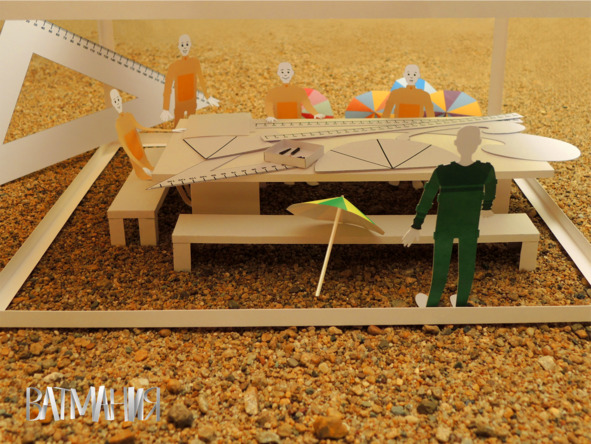 В течение всего трудового дня у дорожников было предусмотрено двадцать обязательных перерывов, во время которых они отдыхали в тени под бумажным навесом. Именно по такому навесу Авистэй и нашёл бригаду Джилфота. Четверо ватманцев расположились на скамьях вокруг огромного стола, на котором были разложены листы бумаги, грифели, толстые бумажные линейки, лекала и шаблоны. Работники были одеты в светлые костюмы песочного оттенка.