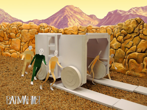 Ширина машины оказалась больше дорожного полотна. Это сделали специально, чтобы не ограничивать размеры строящейся дороги габаритами АДЛАКа. Получалось, что его колёса находились на каменистой поверхности, а бумажная дорога должна была выкладываться между ними. Для облегчения передвижения по таким неровностям Авистэй предложил сделать несколько плотных многослойных щитов. Они должны были двумя узкими полосами подкладываться под колёса АДЛАКа и по мере его продвижения вперёд, перекладываться. Двигать машину предполагалось исключительно вручную, то есть толкать. Авистэй очень рассчитывал на то, что именно колёса облегчат движение даже такой тяжёлой конструкции. И всё это ради одного – защиты от солнца! При желании с крыши АДЛАКа можно было выдвинуть в стороны дополнительные тенты и тем самым увеличить площадь тени. Для этого Авистэй предусмотрительно наклеил на крышу две прочных квадратных трубки. Одним словом, получилась передвижная конструкция, создающая тень.