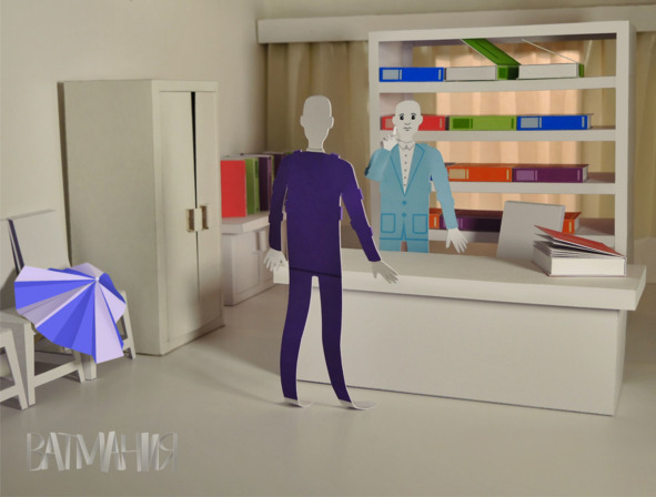Любоваться долго не пришлось, припекало солнце, и друзья поспешили в спасительную тень АДЛАКа. Во время отдыха они ещё раз обговорили свои дальнейшие действия, заострив особое внимание на том, что работать придётся на высоте, и падение с крыши не сулит ничего хорошего. Тут запросто можно получить залом на теле, причём в самом неподходящем месте. Таким слабым местом у любого ватманца была шея, так как именно она подвергалась большим нагрузкам, удерживая голову. Повседневные небольшие повороты головы и наклоны со временем ослабляли упругость, поэтому нередко в Ватмании можно было встретить человечков с бумажными заплатками на шее. Беднягам приходилось поворачивать всё тело, чтобы рассмотреть что-либо сбоку от них. Так и жили, тоскливо кося глазами то налево, то направо.