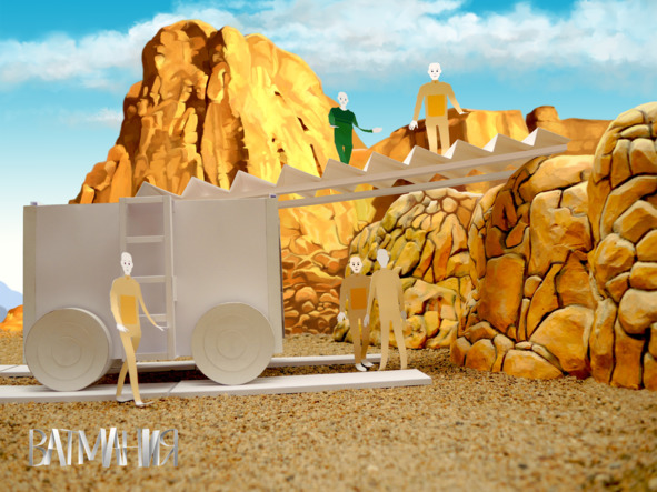 Так же дружно все участники строительства сначала отогнали АДЛАК от камней к навесу, где Авистэй колдовал над лестницей и перилами, и затем погрузили готовую лестницу на крышу АДЛАКа. К счастью, машина легко выдержала дополнительную нагрузку, что ещё раз доказало гениальность идеи Авистэя по её созданию.
