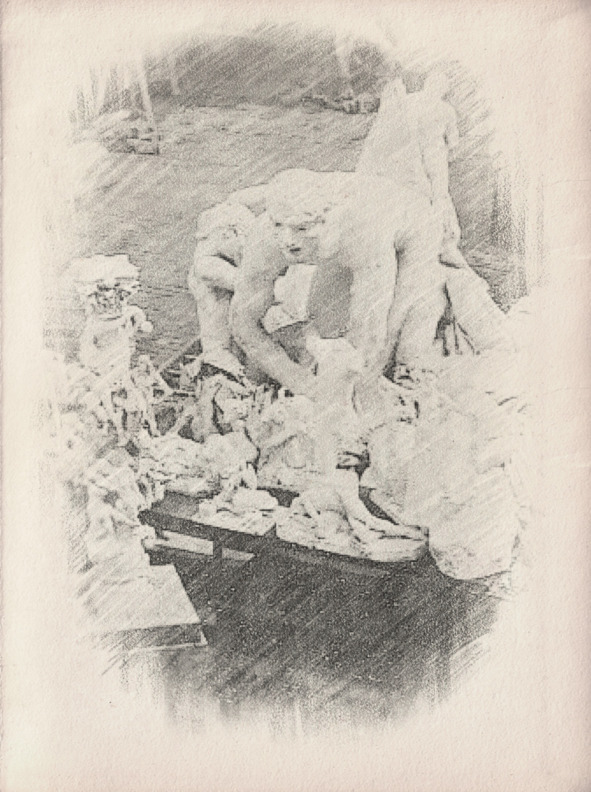 В мастерской Родена. Фрагмент фотографии начала ХХ века.