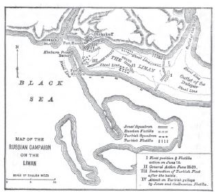 The Turkish fleet and flotilla were drawn up in line parallel to the Russians, under cover of the Otchakoff batteries; they still presented a threatening appearance, but the severe handling they had received during the day had taken much of the fight out of them. Having disposed his squadron and flotilla to the best advantage, and being unable to proceed further without coming under the fire of the heavy Otchakoff batteries, there was nothing left for Jones but to hold his position and wait another attack.