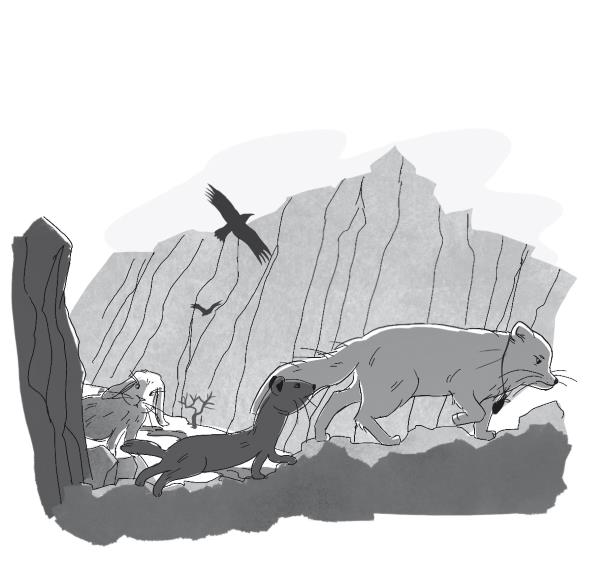 Между двумя горами лежало широкое ущелье, бездонное и скалистое. Эмили осторожно ползла вверх по крутому склону, а Дилла и остальные напряжённо – то пригнувшись, то ползком – следовали за ней. Никто из них не проронил ни слова, каждый слышал лишь шуршание камней под лапами и биение собственного сердца. Вдруг Анке поскользнулся, и несколько камней из-под его лап полетели в пропасть. И только спустя какое-то время до друзей донеслось глухое эхо их ударов о землю. Хорёк едва успел прижаться к земле. Он медленно поднялся и оглянулся, на его мордочке застыл ужас.