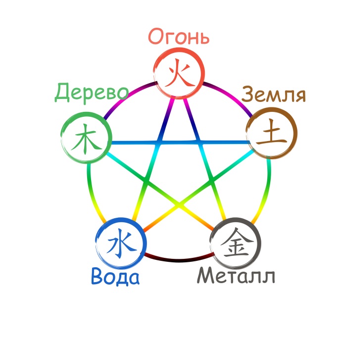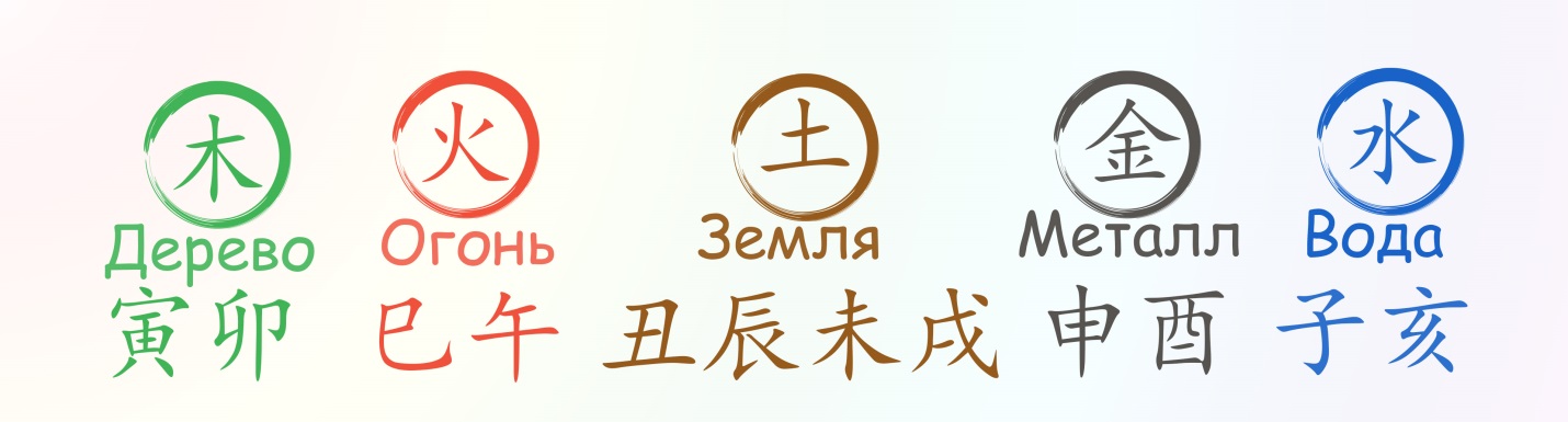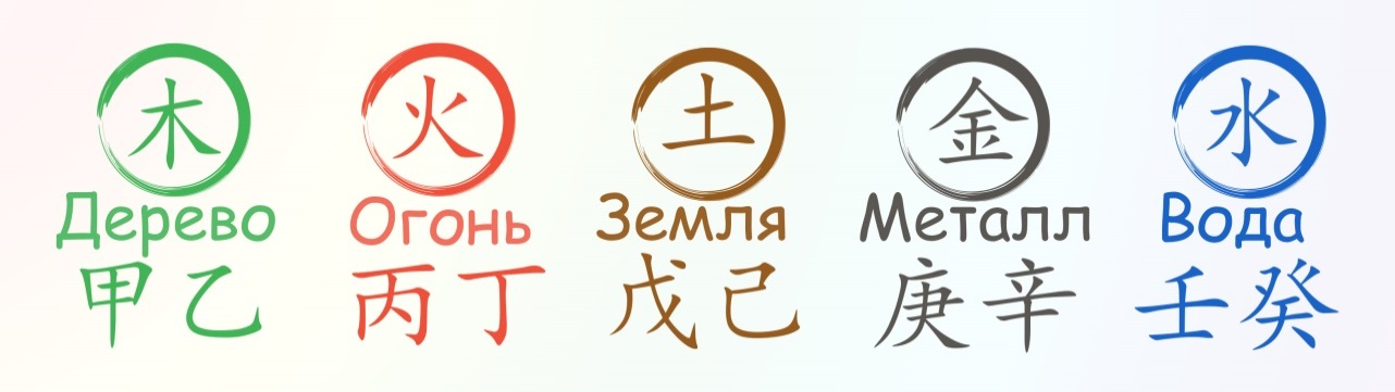 Стихии: Дерево, Огонь, Земля, Металл, Вода.