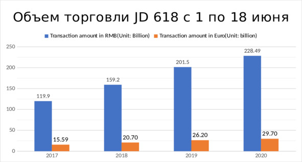 В Китае интернет-площадка JD ежегодно 18 июня организует фестиваль онлайн-покупок, который известен как JD 618. В период с 0:00 1 июня до 0:00 18 июня 2019 года совокупная сумма заказов в этом интерне-магазине достигла 201,5 млрд юаней (25,68 млрд евро), охватив 750 млн потребителей по всему миру. В 2020 году эта цифра еще больше выросла, так как совокупная сумма заказов превысила 228,49 млрд юаней (что составляет 29,12 млрд евро) с 0:00 1 июня до 00:00 18 июня 2020 года.
