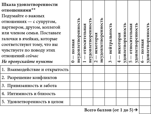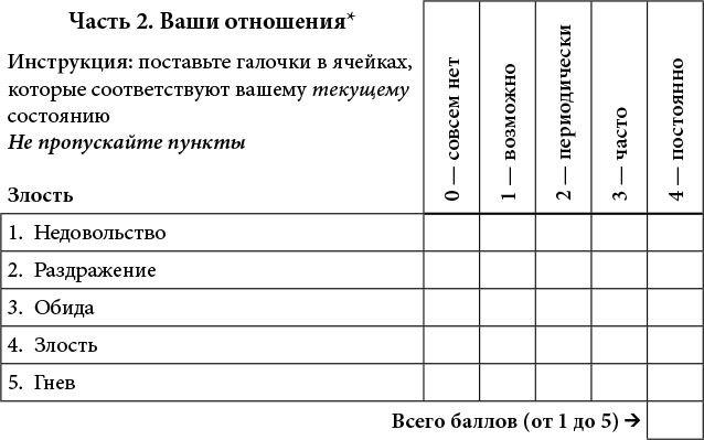 У вас получились высокие баллы по шкале злости и низкие – по шкале удовлетворенности отношениями? Добро пожаловать в клуб. Периодически мы действительно злимся на других людей. Я знаю это по себе! Если хотите добавить в свои отношения больше любви и сделать их более удовлетворительными, внимательно читайте дальше: в этой книге я поделюсь с вами новыми потрясающими приемами, которые помогут вам. Однако помните, что вы вовсе не обязаны ладить со всеми.