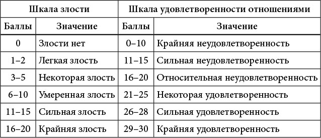 Ключ к шкале злости и шкале удовлетворенности отношениями