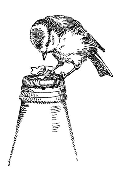 Сообразительность синичек в свое время стала проблемой для молочников Англии. Там существовала традиция – ранним утром они оставляли у порога домов бутылки с молоком. Так вот синицы повадились проклевывать крышечки из фольги, а затем угощаться жирными сливками на поверхности молока. Вначале отмечали такого рода единичные случаи, а затем они приняли массовый характер в разных районах страны. Таким образом, одни птицы исследовали ситуацию и догадались, что лакомство находится под крышечкой, которую достаточно пробить клювом. А другие научились у них подобным навыкам.
