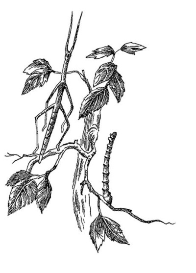 Порой сходство с частями растений, на которых обитает гусеница, возрастает благодаря сочетанию покровительственной окраски с характерной формой тела. Например, гусеница пяденицы походит на сухой сучок.