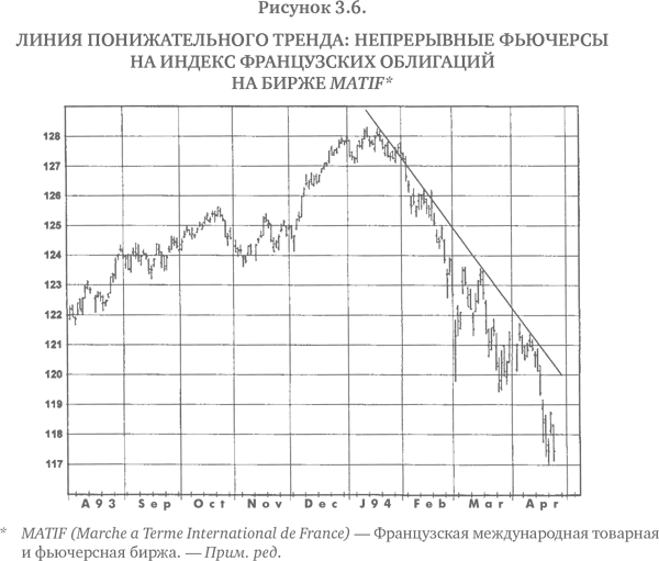 В книге «Новая наука технического анализа»[2] Томас ДеМарк верно замечает, что проведение трендовых линий является весьма произвольным процессом. На одном и том же графике разные люди проведут линии тренда по-разному. Более того, даже один и тот же человек, взяв в руки тот же самый график, но в другое время, вполне может нарисовать трендовую линию иначе.