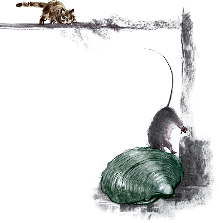 Довольная исходом событий, мышь вышла из норы. Но то ли ее жертва оказалась недостаточной, то ли сама мышь сплоховала, вскоре она оказалась лакомой добычей все той же кошки.