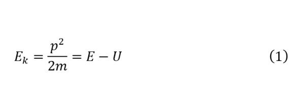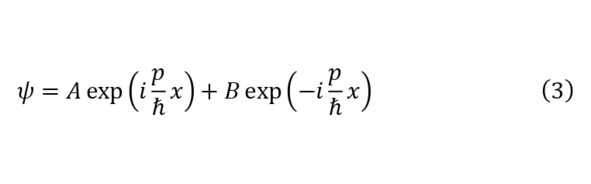Для большего понимания настоящего эффекта укажем, что пусть изначально задаётся определение кинетической энергии частицы согласно (1), откуда видно, что если выполняются условия действия квантового туннельного эффекта, то получается, что импульс такой частицы, удовлетворяющая поставленным условиям должен становиться мнимой величиной и казалось бы это никак не могло быть в реальности, но вместе с этим решение знаменитого уравнения Шрёдингера (2), где потенциальная энергия частицы является константой имеет решение (3), откуда выводиться значение для импульса как (4).