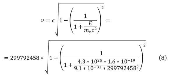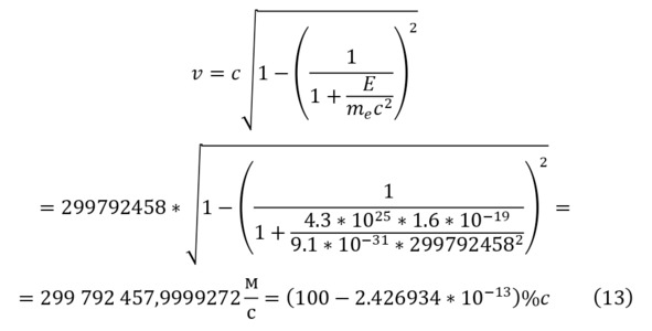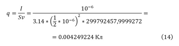 Таким образом, можно было определить приближение скорости света, которое можно принимать практически равным величине скорости света. И указывая, что в качестве диаметра пучка принимается 1 мкм, можно говорить о получаемой величине заряда и количестве частиц (12).