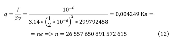 Значение, которое становиться почти нереальным с учётом современных устройств, но это определение подходит, если учитывать, что ток частиц будет измеряться в мА или мкА, что можно определить заряд, через (7).