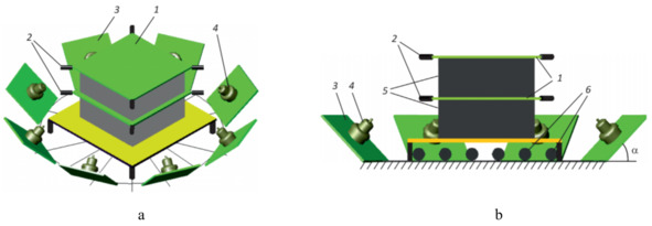 3-детекторы направления, 4-ФЭУ-125; 5-углеродные поглотители;